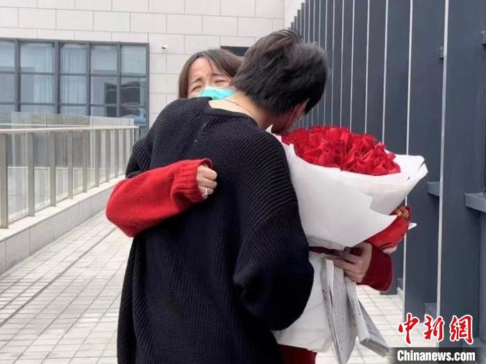 当日,在同事、亲朋好友的见证下,何甜甜与张先生紧紧相拥。张先生说,好事多磨,日后会一如既往地支持和陪伴。