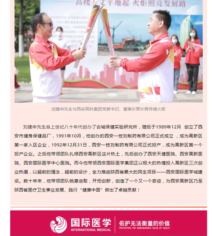 国际医学官方微信账号内的文章。2002年,46岁的刘建申开始创办医院,西安高新医院也就是在这一年开院。2003年,刘建申又注册成立西安天健医院,自己担任董事长。目前天健医院已经注销,仅保留了西安天健医药科学研究所。