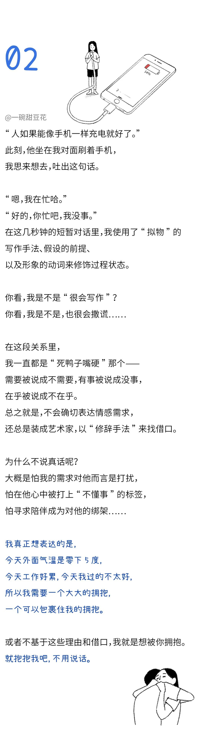 比如一句“我想你了”,到嘴边变成了“你在干嘛”;比如需要拥抱时,却只说了句“你忙吧我没事”……