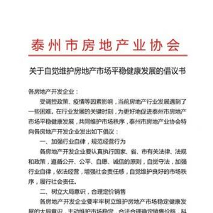 原标题:江苏泰州房协向房企发倡议:树立大局意识,不恶意降价不恶性竞争