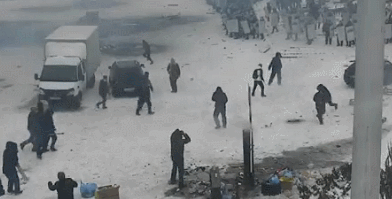 哈萨克斯坦暴徒开车冲撞警察 俄维和部队携装甲车抵达