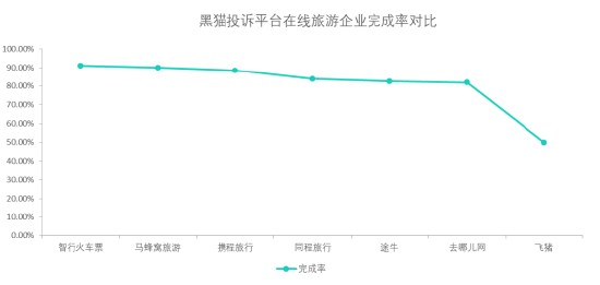 黑猫投诉在线旅游企业投诉数据对比:智行火车票完成率高于飞猪