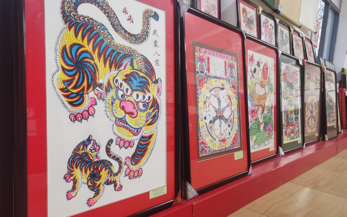 她还在尝试复原老版的年画,就在前不久,她想起一幅虎的年画,却找不到相应的木版和图案了,最终在年画博物馆找到了一幅旧版。照着旧版,一点点复原。甚至连旧版磨损的地方,也原样保留了下来。