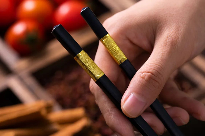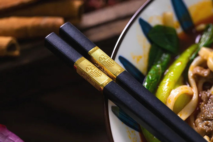 筷子顶端的金色浮雕用料扎实,刀刃刮蹭也没有掉漆情况,金灿灿的就像真金一样大气。