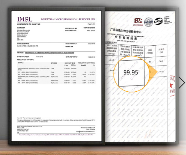 添加有妙抗保®抗菌剂的合金筷,用起来更放心。抗菌效果可不是空口无凭,正规检测报告在此↓