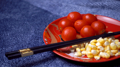 光滑的小番茄,略扁的玉米粒,不会从筷缝里溜走。
