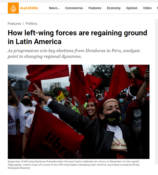 卡塔尔半岛电视台引述分析人士的话称,在过去5年里,拉美出现一股潜在的“进步主义浪潮”。
