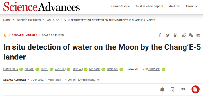 北京时间1月8日,由中科院地质与地球物理研究所(以下简称地质地球所)行星科学团队与多家科研机构合作完成的研究论文在《科学-进展》上发表。这项研究利用嫦娥五号所携带“月球矿物光谱分析仪”探测的数据,首次获得了月表原位条件下的水含量。