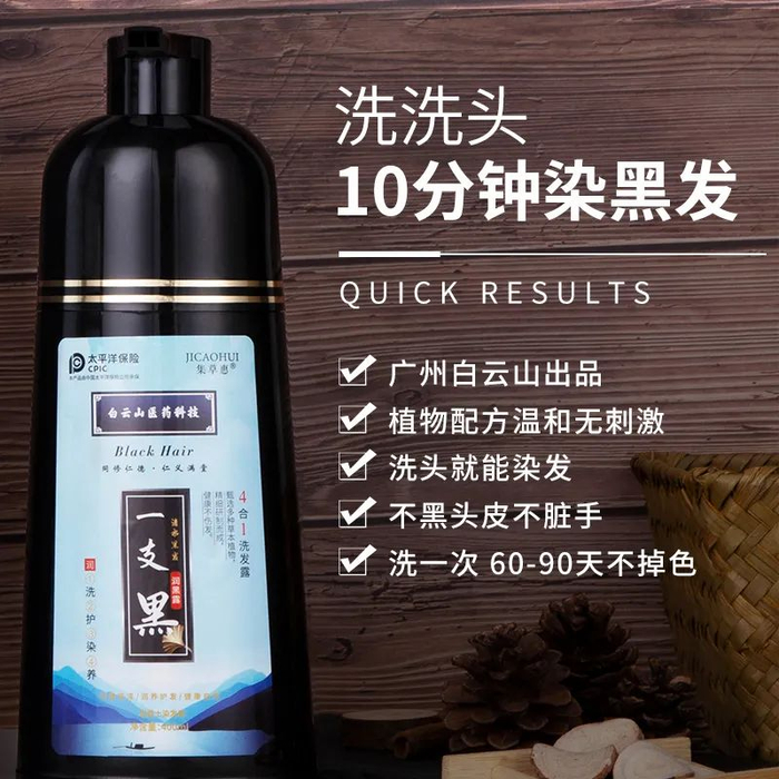 而白云山一洗黑,洗洗头10分钟黑发,不黑头皮不脏手,差不多3个月不掉色。