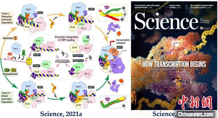 ——转录起始超级复合物组装机制。转录起始超级复合物是中心法则中转录步骤的核心,对理解基因表达调控和相关生理病理过程具有重要意义,一直是国际生命科学研究的核心和前沿问题。复旦大学徐彦辉团队解析转录起始复合物PIC及其与Mediator(中介体)组成的转录起始超级复合物结构的三维结构,系统地展示转录机器识别不同类型启动子并完成组装的全过程,揭示了转录为何发生在几乎所有基因的启动子上,颠覆了关于启动子识别和转录起始复合物组装的传统认识,阐明了Mediator促进PIC组装和转录激活的机制。该成果以2篇研究长文发表于《科学》杂志,其中一篇题为“转录如何起始”被《科学》选为封面文章。