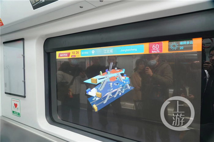 跟随工作人员,记者登上了一趟开往高滩岩站方向的列车。凑巧的是,这趟列车是该线路上的一辆新款列车,车厢内配置了不少“黑科技”。