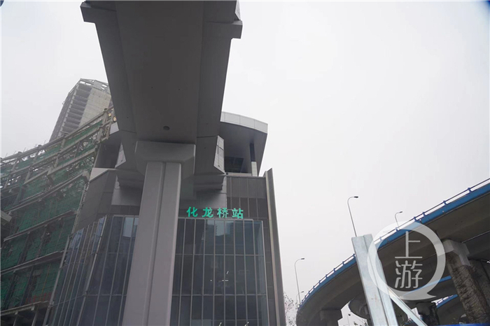 列车飞驰过9号线一期控制性工程嘉华轨道专用桥后,进入化龙桥站。在紧贴重庆第一高楼的站台上,嘉华轨道专用桥——这座世界最大跨轨道连续刚构桥,和一旁的嘉华大桥两桥飞架南北,其雄伟气势与嘉陵江两岸优美风光尽收眼底,这也让化龙桥站有望成为新的打卡地。