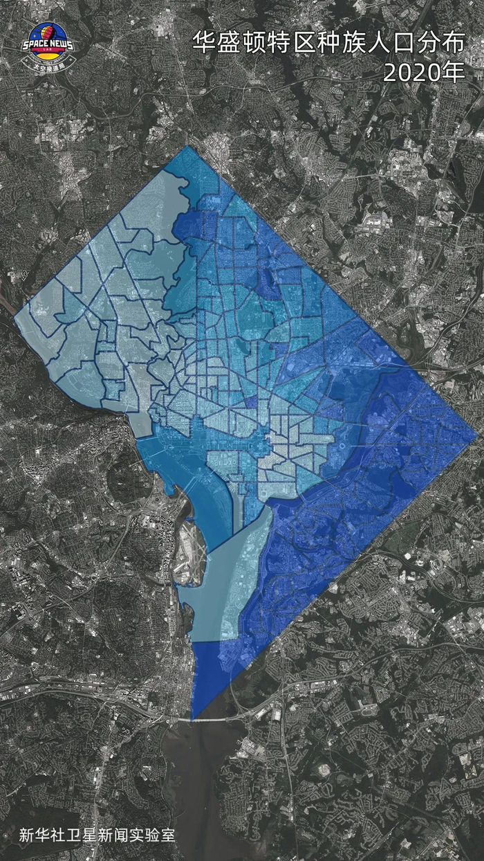 在纽约,在底特律,在费城……通过2020年人口普查数据能够看到,每一座美国城市几乎都有一颗“深色心脏”,或者存在华盛顿特区这样截然分明的对立。