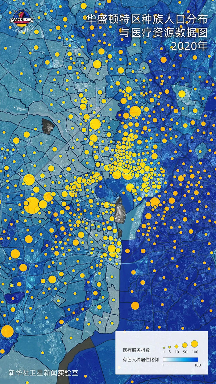 在华盛顿特区,以阿纳卡斯蒂亚河为界,医疗资源分布存在明显差异。