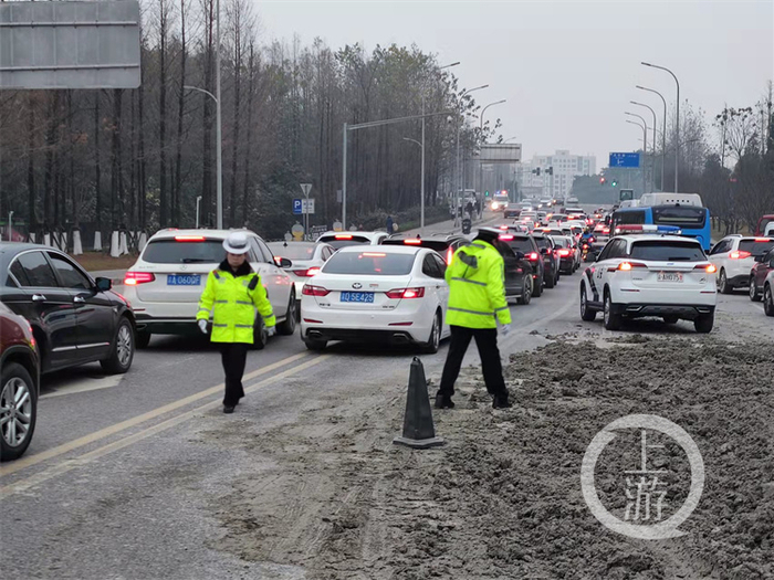 1月4日凌晨,江北区公安分局交巡警支队石马河大队民警在辖区巡逻时发现这一情况,立刻进行了报告,还在现场周围设置了锥形桶等警示标志,防止有车辆误入。民警称,这些泥沙石子断断续续撒在地上,前前后后有好几十米,最长的一段约有二十米。