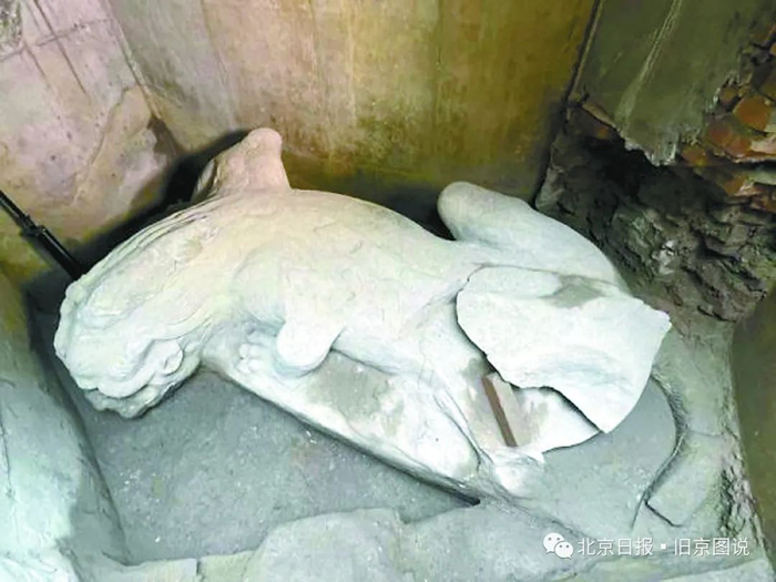 其实,这镇水兽早已在地下百年有余了,咸丰元年《金吾事例》记载,正阳门外沿河铺户侵占护城河,桥被“侵过石栏杆六七段有余”,证明当年镇水兽已被掩埋盖房,此后的老照片中,再未见过它的身影。