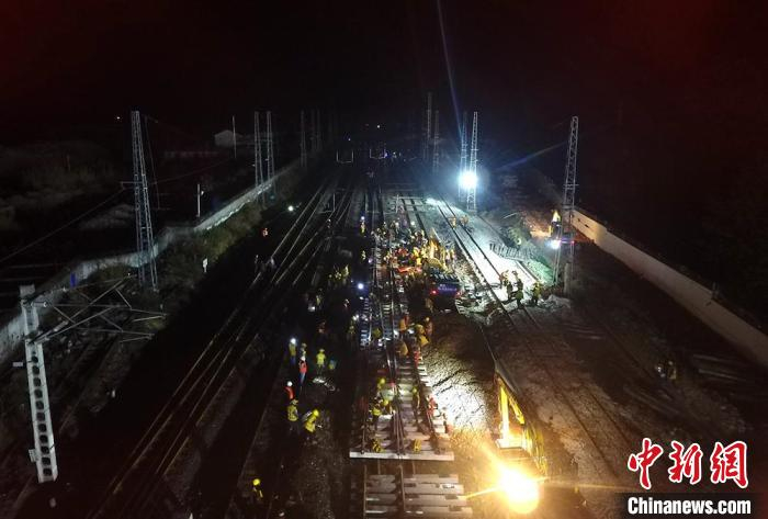 施工人员从2021年12月29日开始,每日凌晨1点30分开始至凌晨5点30分进行扒除、锯轨、插入道岔、合龙钢轨等施工作业。15天时间里,共计拆除既有道岔10组,新插入道岔10组。