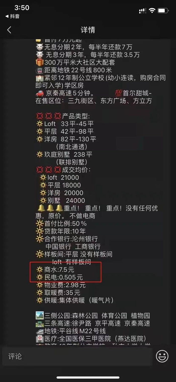 “现在涨了7分钱,后面电费是不是还要涨?涨多少?涨到什么程度为止?”刘女士非常担忧。“当时买房的时候,销售人员明明白白的告诉我们是民电商水,也发过这样的文字资料,现在才一年,性质说改就改,现在不是这7分钱的事儿了。”