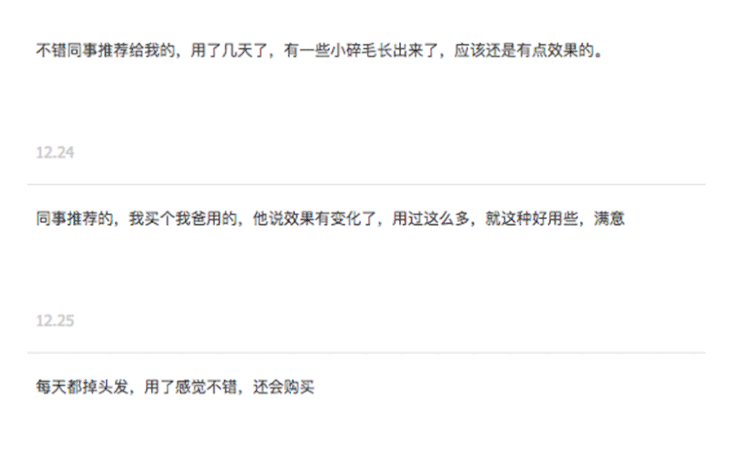 “防脱效果好”、“发量越发浓密”、“强烈推荐”。