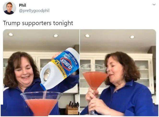 而特朗普则随即在白宫新冠病毒简报会上提出了消毒剂可以用来治疗新冠病毒的想法,并宣称“一分钟就能把病毒杀死!”