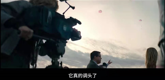 然而电影中本已发射的导弹,在一众媒体的直播中突然掉头返回地球。
