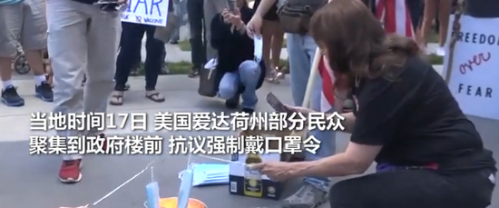 最终民众们聚集在爱荷华州政府大楼前,公然焚烧这些全新的口罩,同时高呼“自由大国恐惧”。