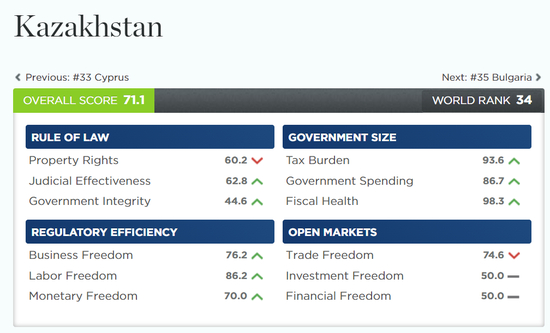 ● Heritage基金会公布的对于哈萨克斯坦经济自由状况的评分 / 网页截图
