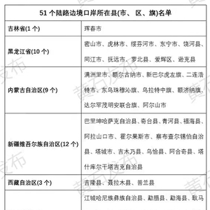 51个陆路边境口岸