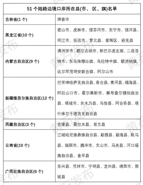 一类是51个陆路边境口岸所在县(市、区、旗),这类来黄返黄人员,实行限制性管控措施;