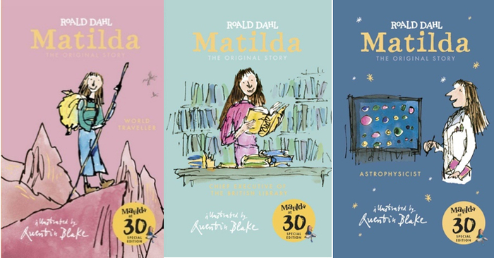 达尔的故事也从没被人遗忘。距离达尔生前最后一部儿童文学作品《玛蒂尔达》出版已经过去三十多年,那个酷爱读书、用魔法惩罚邪恶校长的神童玛蒂尔达的故事仍在继续。2018年,玛蒂尔达30岁生日的时候,达尔童书人物形象的缔造者、绘本大师昆廷·布莱克绘制了三版封面。在封面上,昆廷描绘了成年后从事3种职业的玛蒂尔达,分别是环球旅行家、大英图书馆馆长、天体物理学家。