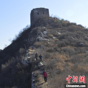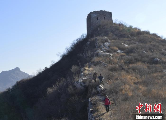 长城保护志愿者在巡视河北省唐山市迁西县太平寨镇擦崖子村长城。 王晓峰 摄