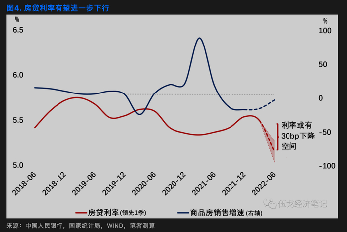 长江证券首席经济学家伍戈在最新研报中指出,结合历史经验,若要销售增速纠偏转正,房贷利率或仍有30BP左右的下行空间,而这往往是通过调降贷款市场报价利率(LPR)与加点两种方式共同实现的。他预测,2022年尤其上半年除了房企融资约束的进一步放松,住房预售资金监管、因城施策或都有更多优化与调整值得期待。