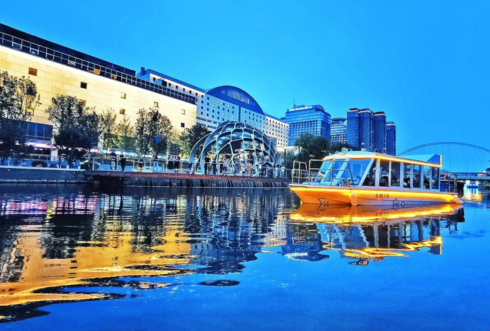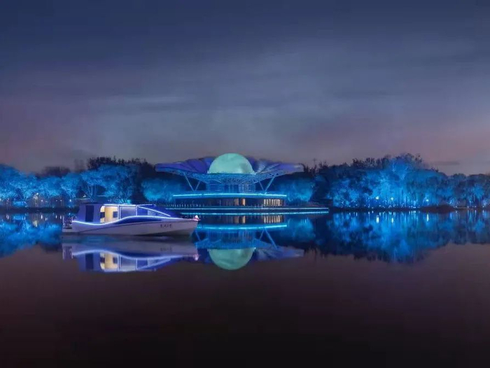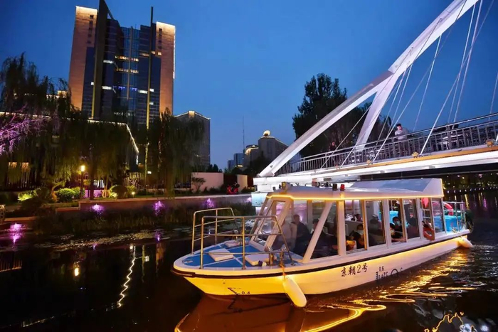 乘船夜游打卡点包括:星河·铂宫船闸演绎、流萤·朝阳公园路桥、留声·退水渠桥北、蝶舞·退水渠桥南、万象·贝壳剧场等。