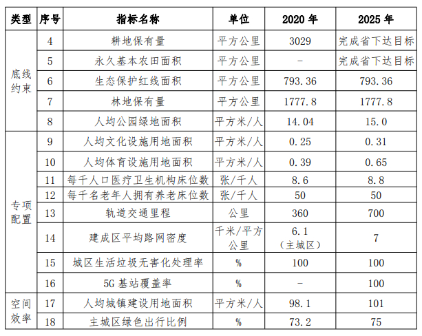 “十四五”规划主要指标表