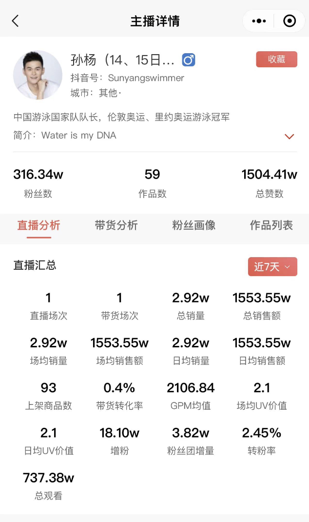 孙杨5小时直播大卖1500万!有粉丝失望:不复出了吗?