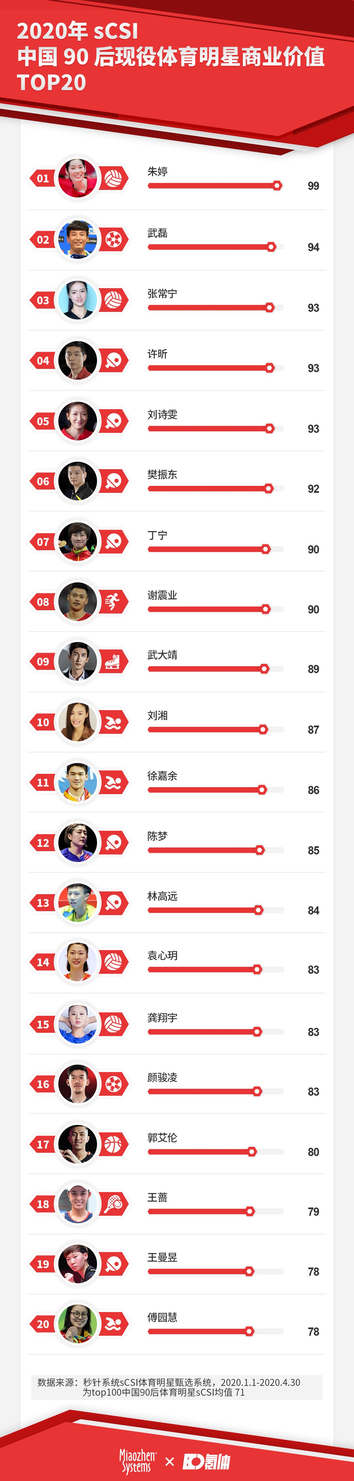 《2020年度SCSI全球现役体育明星商业价值榜单TOP 20》中,孙杨直接跌出20名开外,代替孙杨成为最具商业价值的中国运动员是朱婷。