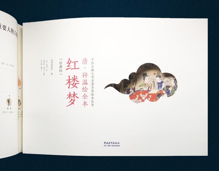 筒子页封面+镂空工艺,隐隐约约看到红楼中人,在暗影斑驳中依旧光鲜夺目。