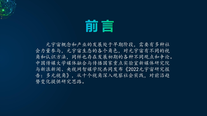 中国传媒大学与新浪新闻、 央视网共同发布《2022元宇宙研究报告:多元视角》