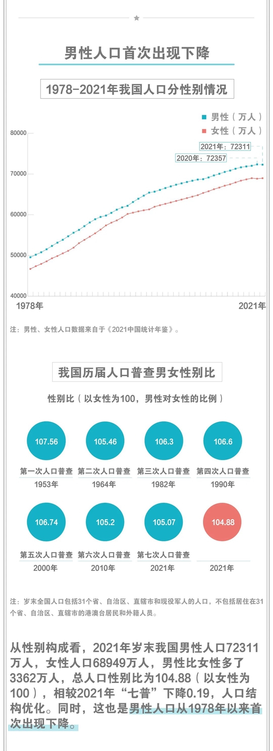 原标题:40年来男性人口首次下降,一图看懂我国最新人口形势