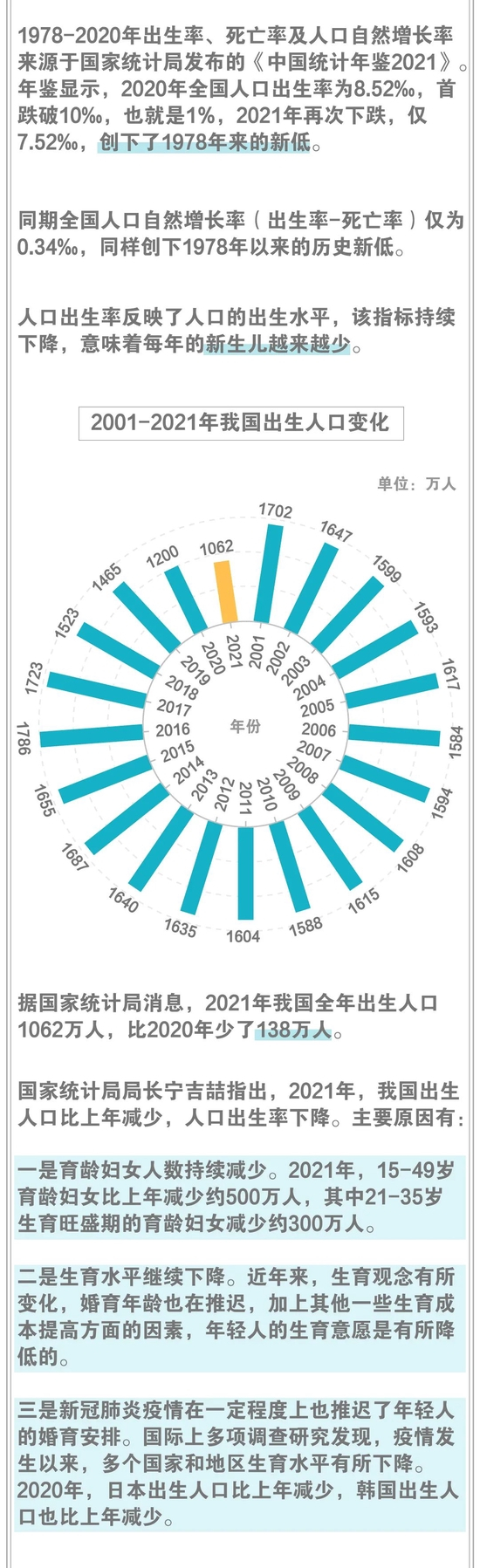 距离世界上规模最大的调查项目——第七次全国人口普查数据发布过去没过多久,2021年全国岁末人口统计就再登热搜。