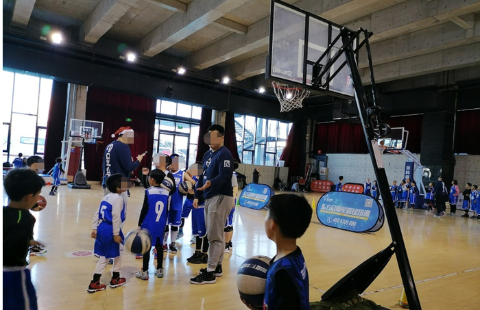 五棵松的HI-PARK篮球公园里,有多块室内场地,每到周末基本都是体育培训班包场。即便是碰到了寒潮的上周六,场地上也都是穿着篮球服的孩子们,里侧的两个场地里,每个场地都隔成了三段,记者粗略地数了一下,每块场地上都有四五十个孩子在同时上课。
