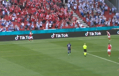小组赛丹麦VS芬兰比赛进行到第42分钟时,丹麦队一名球员在无接触情况下,突然失去意识倒地。