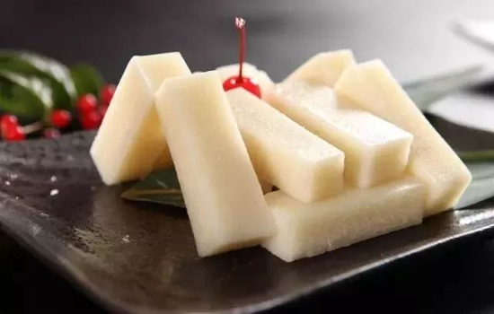 年糕多是以糯米(江米)或糯米粉为原料,添加不同的辅料制成的节令食品。过年吃年糕的传统习俗,从周代就开始了。年糕有黄、白两色,象征金银。既寄寓了五谷丰登、生活富足的美好愿望,又取‘年高’的长寿之意。如今的年糕已经发展成色彩丰富、形状各异的新年美食。