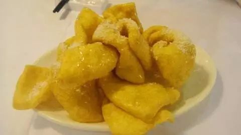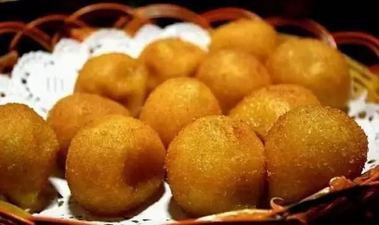 色泽金黄,口感酥脆,油润绵甜的小食品。将和好的面团摘成小剂子,喷上适量的水,然后沾上白芝麻仁炸至其浮上油面时,表面裂开口就出锅了,仿佛吃一个开口笑在新的一年就能笑口常开。
