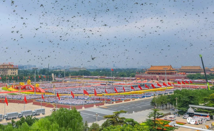 7月1日,中国共产党成立100周年庆祝大会在天安门广场举行,广场花团锦簇、旌旗飘扬,10万羽和平鸽广场放飞。(潘之望)