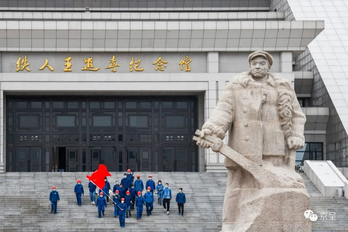 在黑龙江大庆,铁人王进喜纪念馆前的王进喜塑像激励人们艰苦奋斗、为国争光。(邓伟)