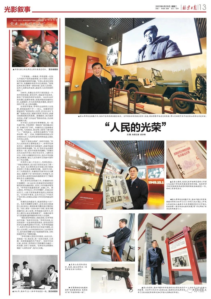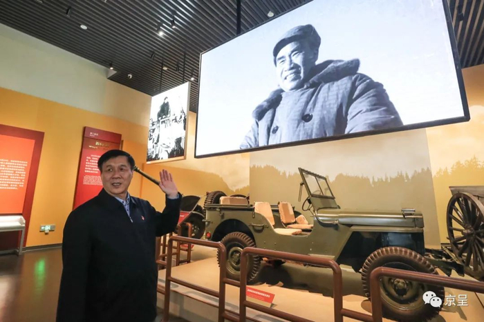 在香山革命纪念馆展厅,朱德之孙朱和平在西苑阅兵展区驻足。当年阅兵时的同款吉普车、礼炮以及阅兵影像中朱老总的英姿,带人们回到中共中央在香山的伟大历史时刻。(武亦彬)