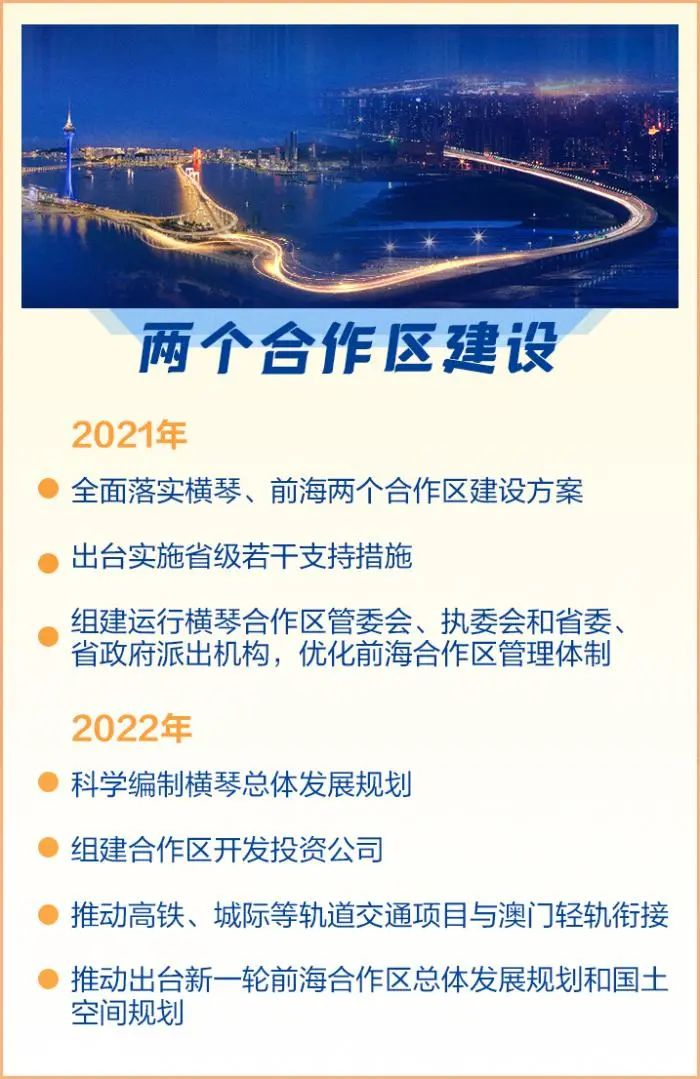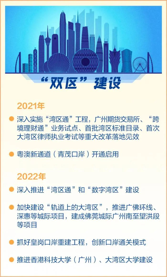 首先是以深入推进粤港澳大湾区建设工作为头号工程,结合推进深圳建设中国特色社会主义先行示范区、深圳综合改革试点以及横琴、前海两个合作区建设,用行动将大湾区建设蓝图转化为实景图,丰富“一国两制”实践。