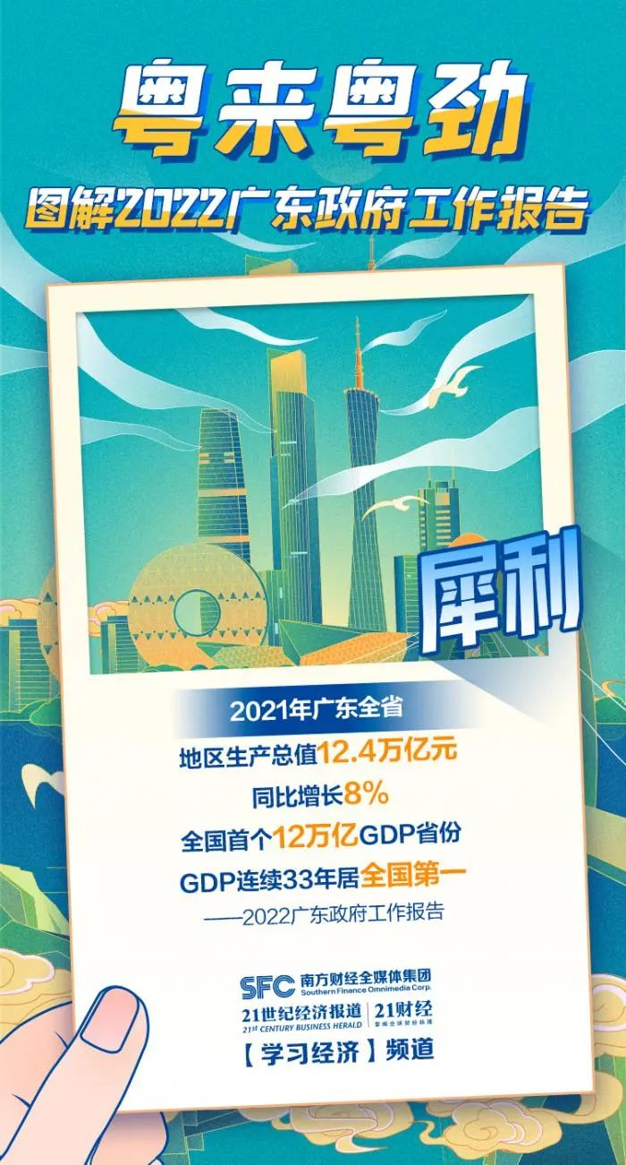 2021年广东经济发展势头强劲,地区生产总值达12.4万亿元、同比增长8%,连续33年总量居全国第一,更是成为全国首个12万亿GDP强省,这为下一阶段经济可持续复苏奠定良好基础。而如何稳住发展强势则是2022年的重中之重。