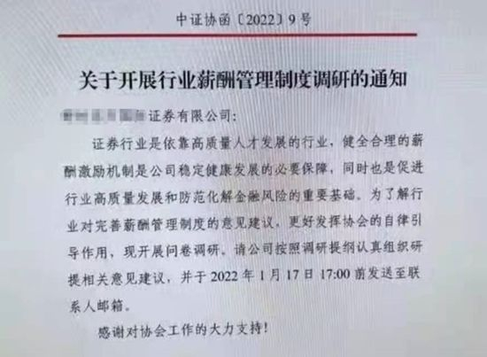 尽管上述事件真实性仍有待考证,但证券行业薪酬问题已引发有关部门的重视。记者此前获悉,中国证券业协会近日向券商下发薪酬管理制度调研的通知,要求券商在1月17日17点前提交反馈意见。通知中提到,健全合理的薪酬激励机制是公司稳定健康发展的必要保障,同时也是促进行业高质量发展和防范化解金融风险的重要基础。为了解行业对完善薪酬管理制度的意见建议进行调研。
